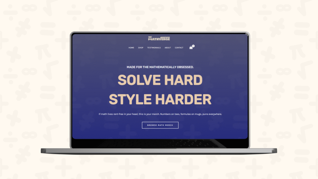 We created MathVerge’s identity to capture the fun side of math, using bold colors, playful typography, and a versatile logo that works across merch and digital platforms.