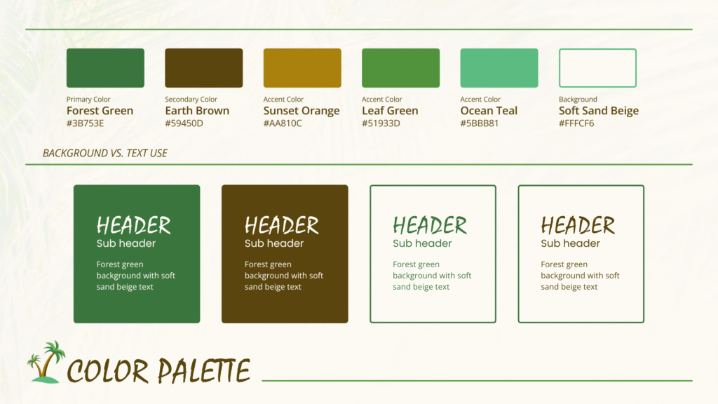 We crafted V Island’s look to feel rooted in nature and hospitality. The forest-inspired palette and handwritten logotype work together to project warmth, comfort, and authenticity.